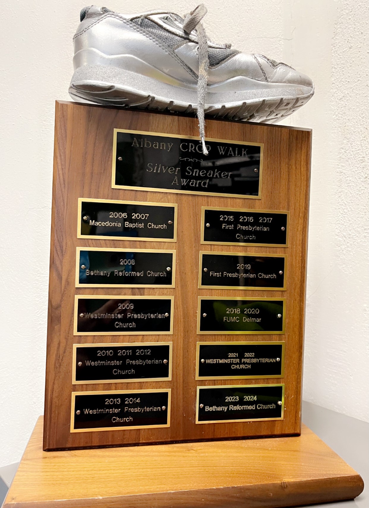 Home About Us Pastor Worship Mission Statement Consistory Room for All History News Pastor's Pondering... Bulletins Newsletter Clynk For Bethany Calendar Events Events Sunday Worship Drop-In Ash Wednesday Service Brooks BBQ Lenten Bible Study Calendar Get Involved Get Involved Choir Property Committee Worship Committee Community Community Boy Scouts Fort Orange Stamp Club Albany Crop Walk Contact Us Contact Us Map Albany Crop Walk Community Boy Scouts Fort Orange Stamp Club Albany Crop Walk Bethany received the Silver Sneaker Award for the 2024 Albany CROP Walk!